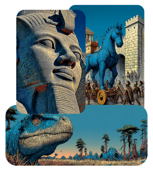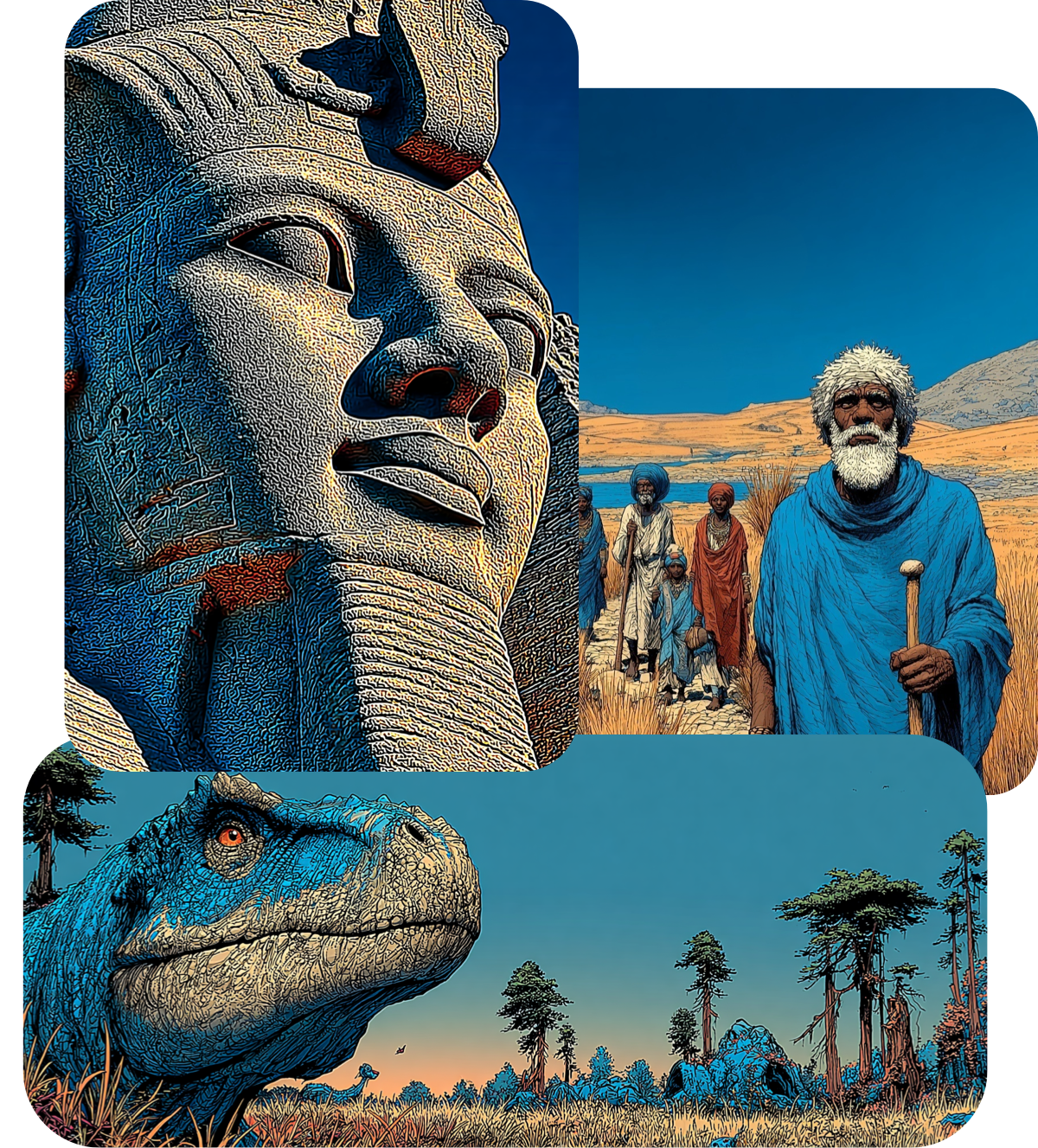 Kunnar persónur frá þessum tíma eru einnig kynntar til sögunnar: Nefertítí, Hammúrabí, Hatshepsut, Ramses II. og fleiri.